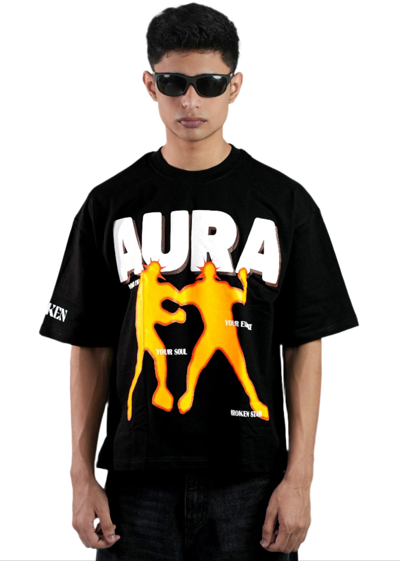 Black oversized boxy fit tee featuring puff print at front and embroidery at back.